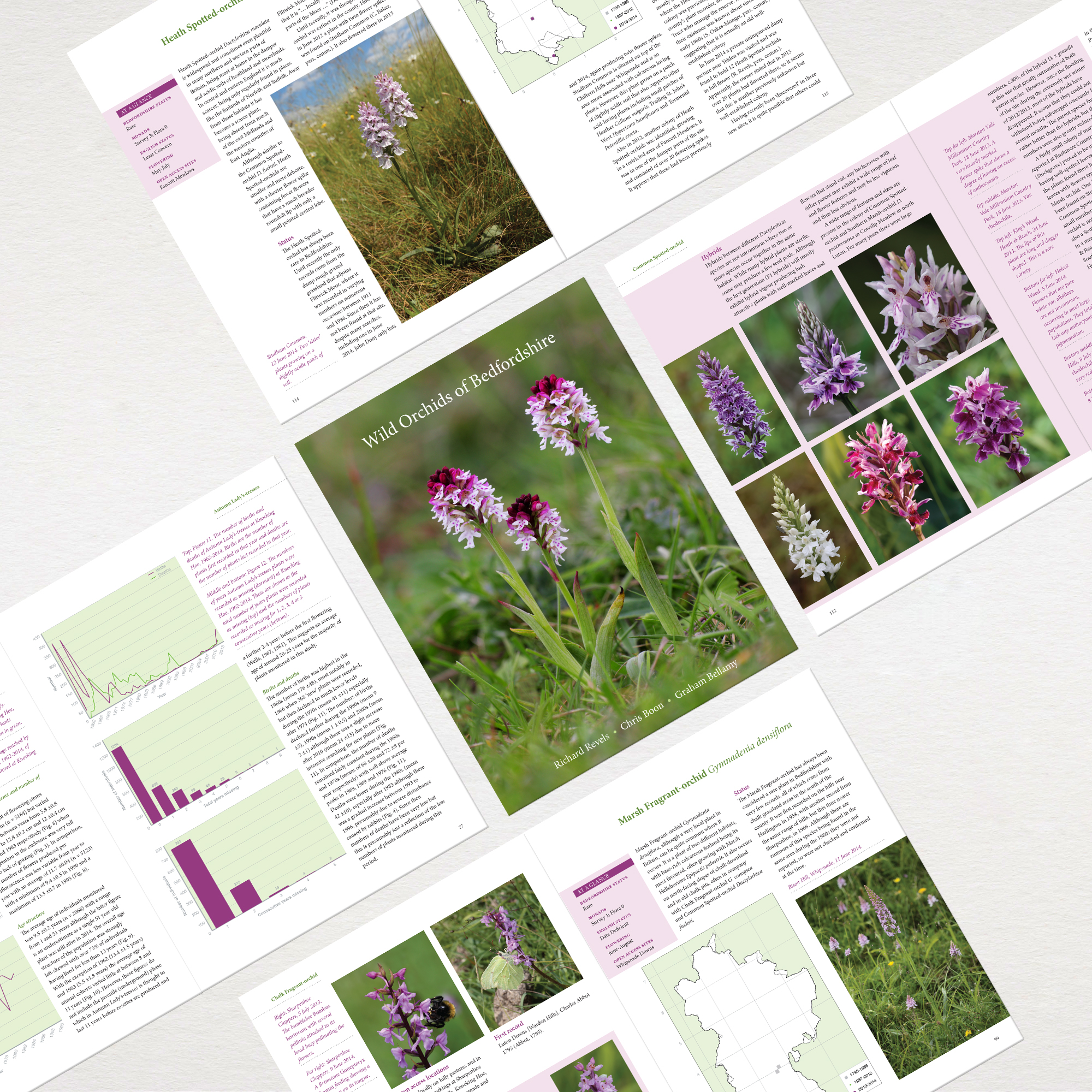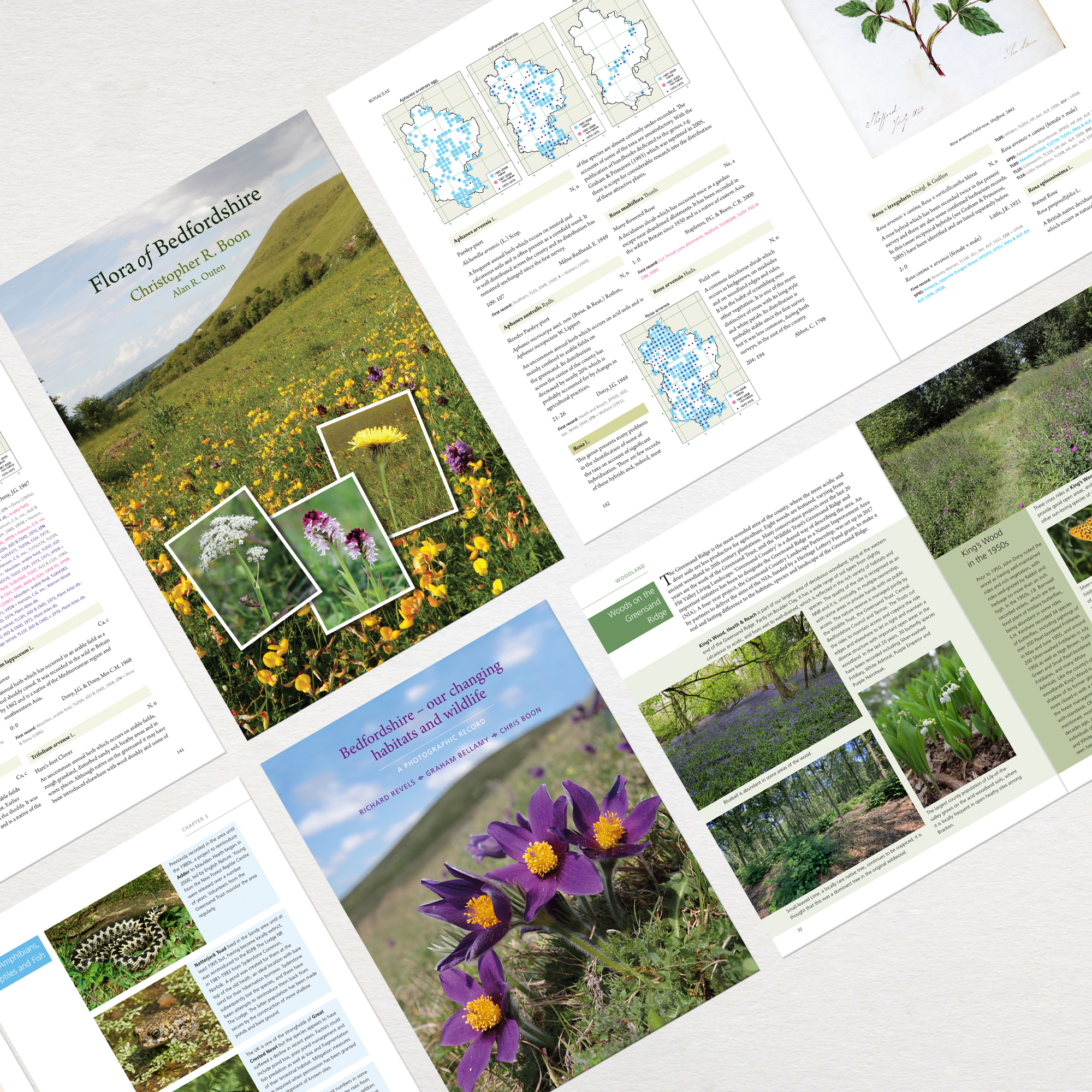 After producing the Flora of Hertfordshire we had an enquiry from the adjacent county Bedfordshire to produce a similar volume. This proved to be, at 700+ A4 pages, the largest book we have produced so far. It has led to further books, smaller but particularly well illustrated, on wild orchids and the changing habitats and wildlife of the county – subjects close to our hearts and a pleasure to work on.