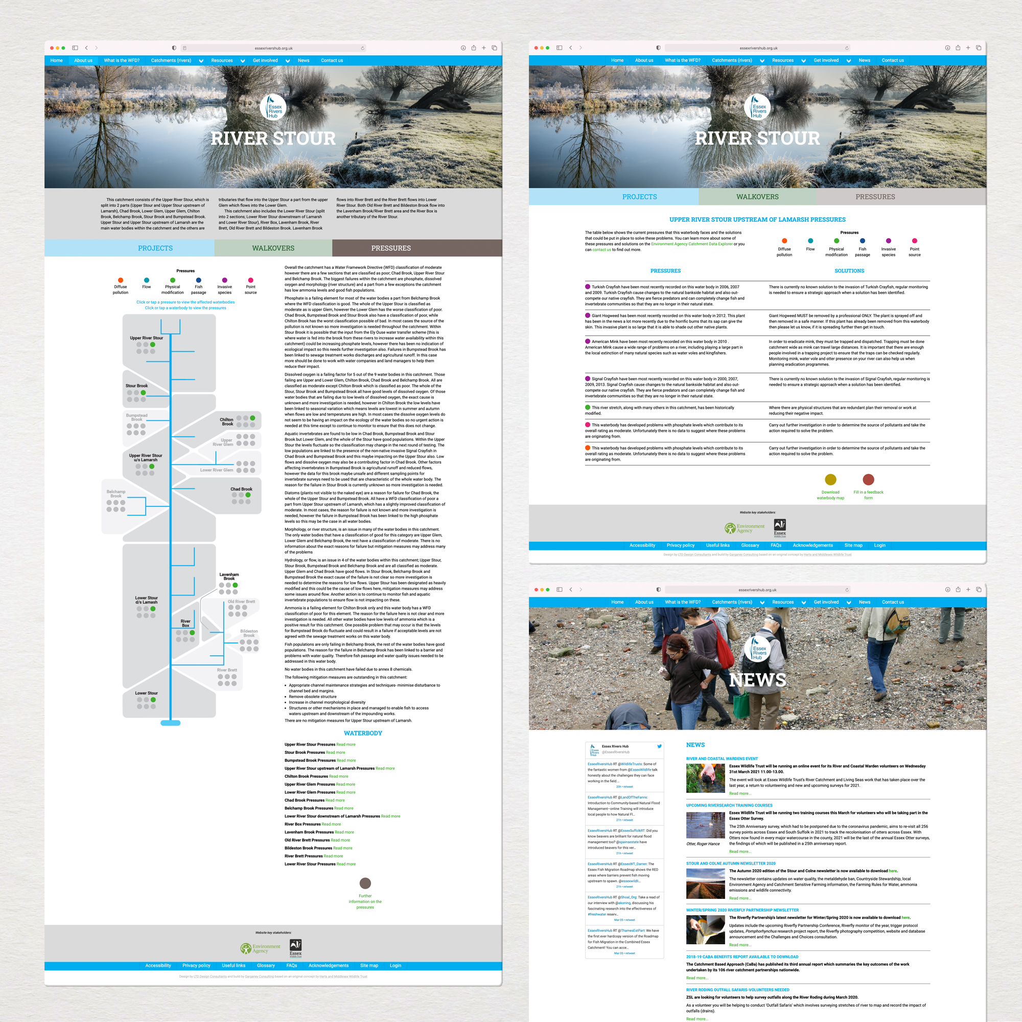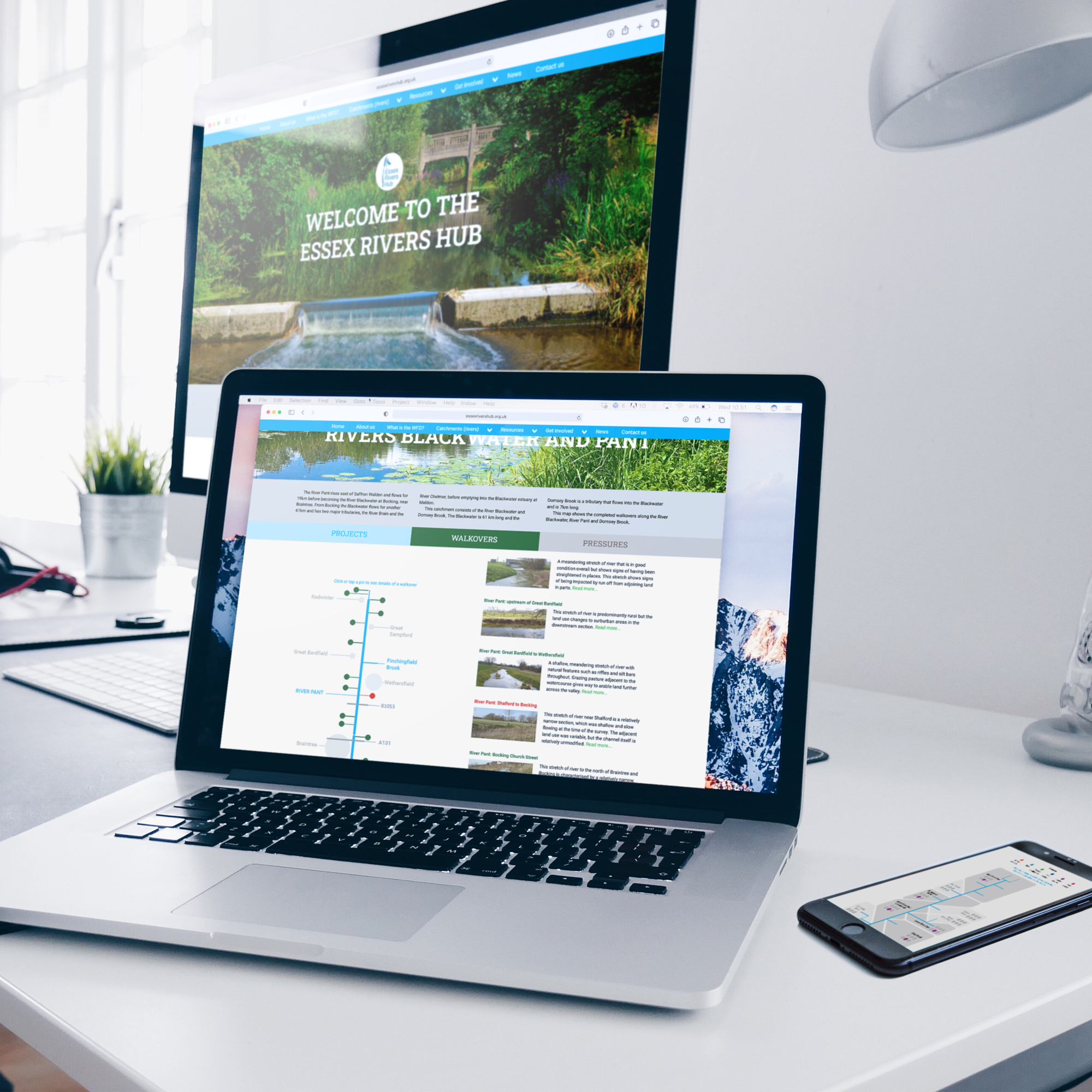 The Essex Rivers Hub is a partnership initiative led by the Essex Wildlife Trust and the Environment Agency. The aim of the website is to provide a portal for sharing information about Essex rivers, and to show the results of river corridor surveys and project work aimed at achieving good ecological status for rivers in Essex. It allows many different organisations to contribute information about their projects. An important element of the site is that all the data can be entered and updated by the client.